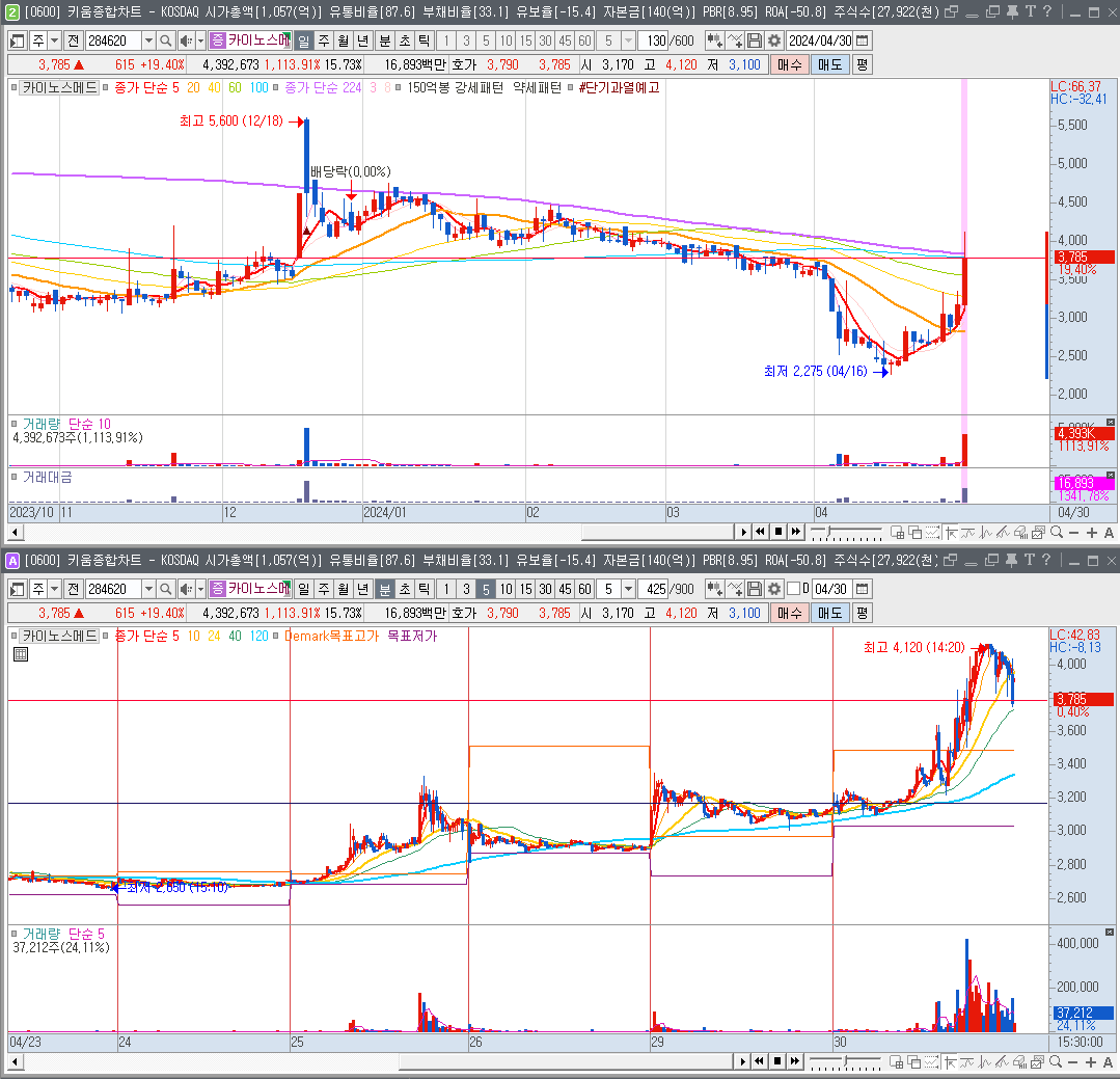 카이노스메드 ( 19.4 %) ( 거래대금: 16,587 백만원 )