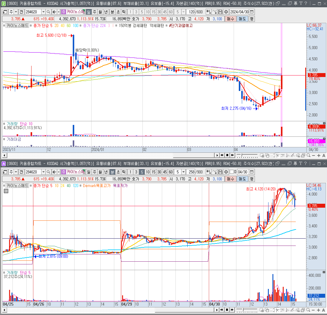 카이노스메드 ( 19.4 %) ( 거래대금: 16,587 백만원 )
