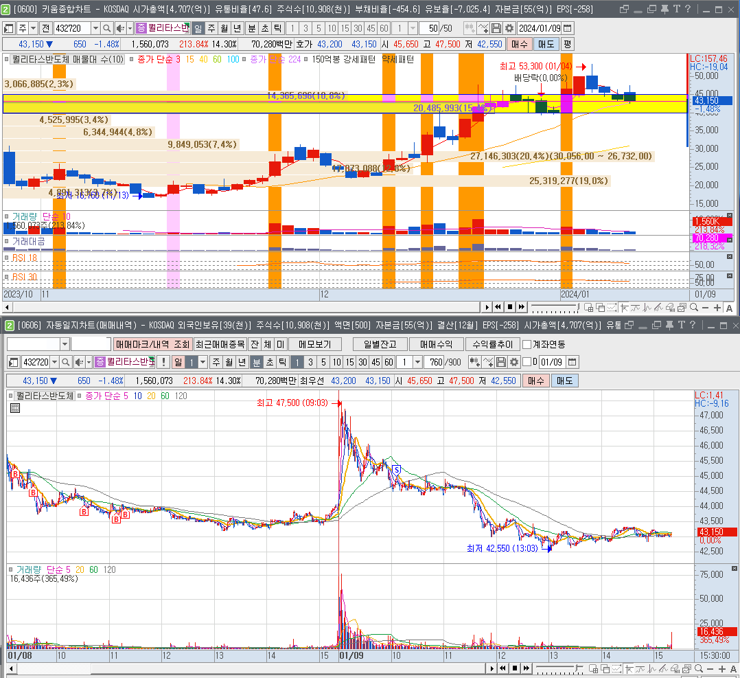 퀄리타스반도체 ( -1.48 %) ( 1,560,000 )