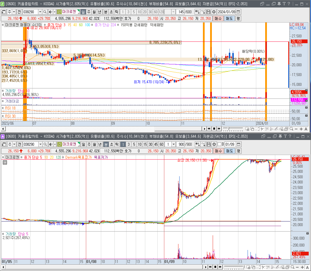 마크로젠 ( 29.78 %) ( 4,547,065 )