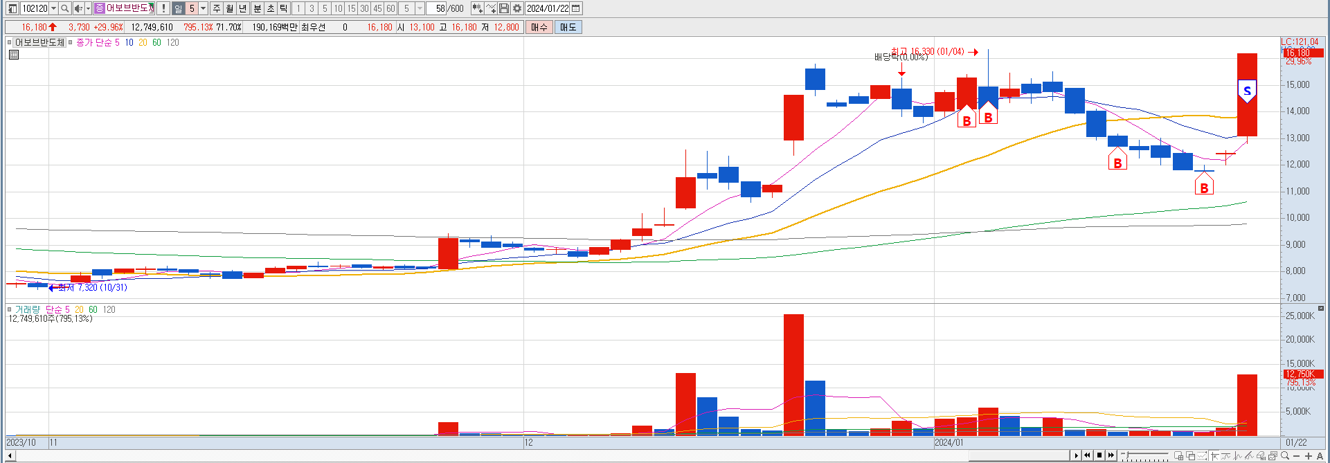 어보브반도체 ( 29.96 %) ( 12,744,859 )